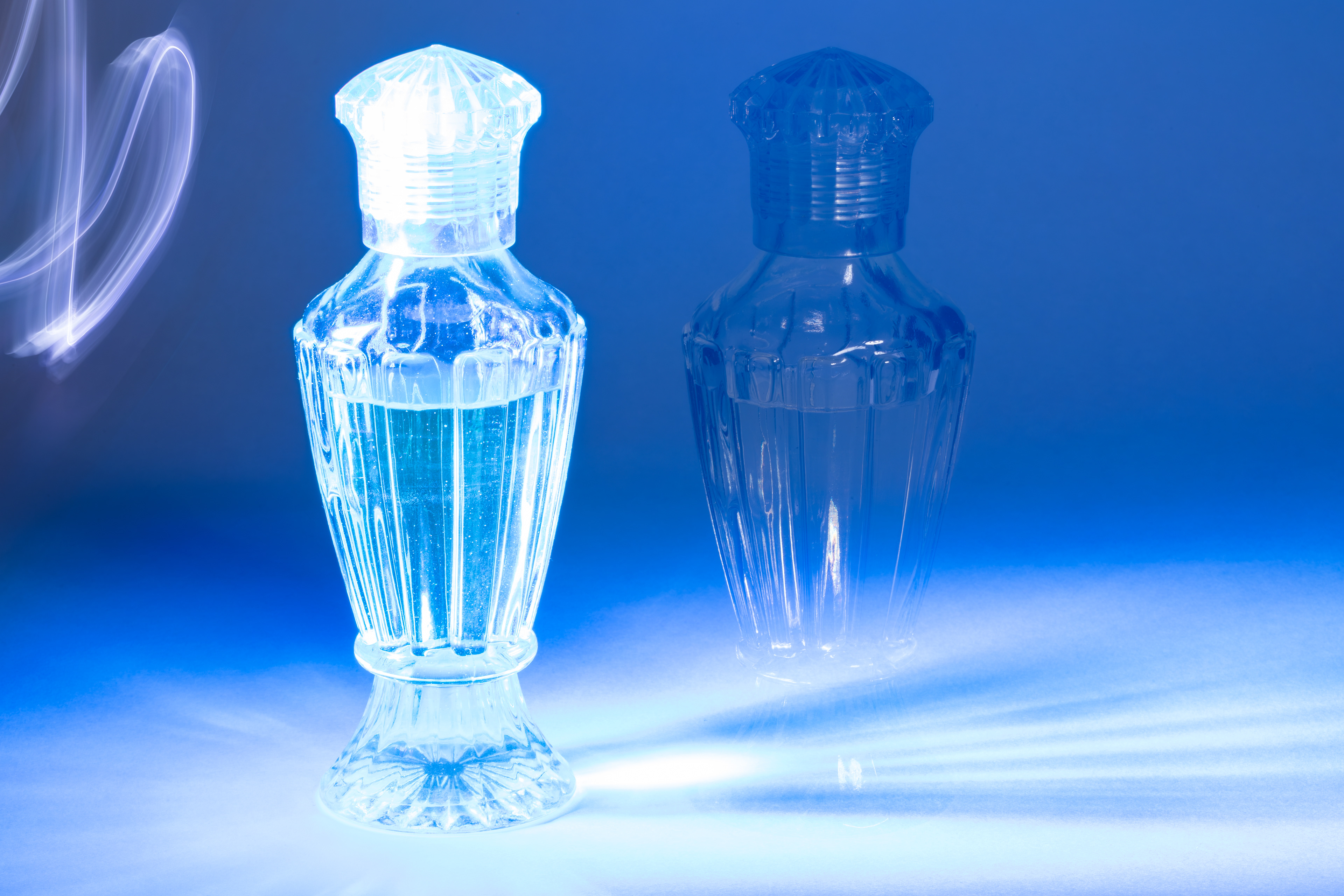 Retro bir kolonya şişesinin ikizini ışıkla boyayarak yaratmak